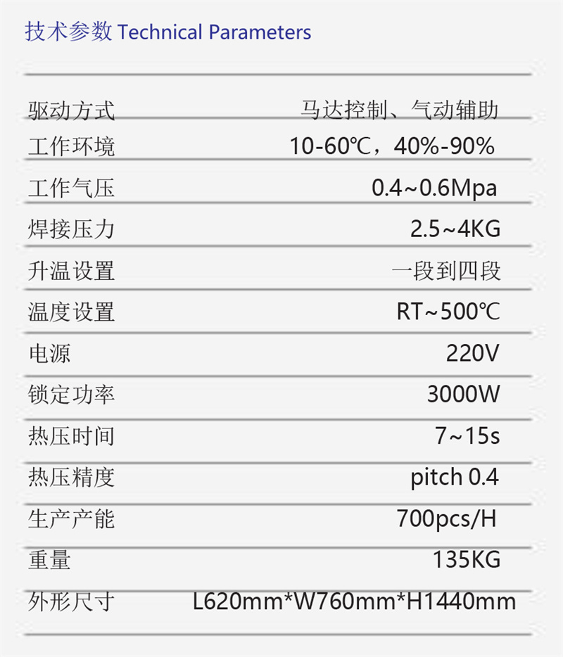 ●機臺調(diào)模、焊頭水平調(diào)節(jié),調(diào)機方便快捷,并設有系統(tǒng)自動檢測、故障報