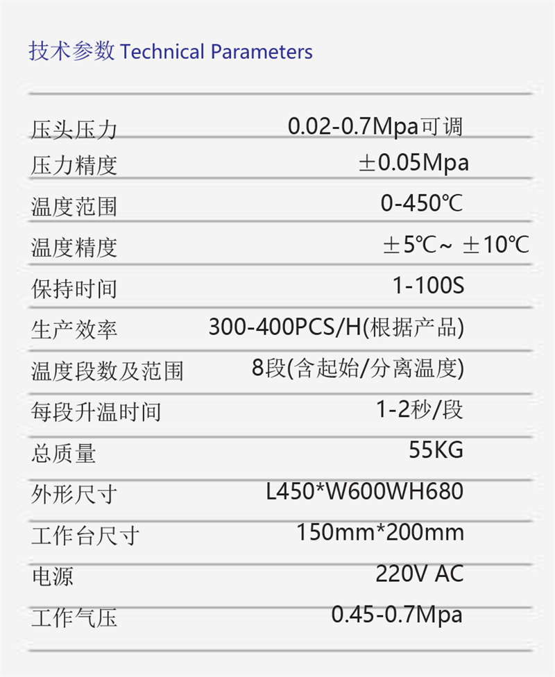 ●采用伺服電機控制,確保設備運行穩(wěn)定,壓力可調